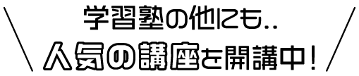 | 9月 | 前期期末テスト対策授業 小学生 塾内テスト(第2回) | 3月 | 後期終了 春期講習 |